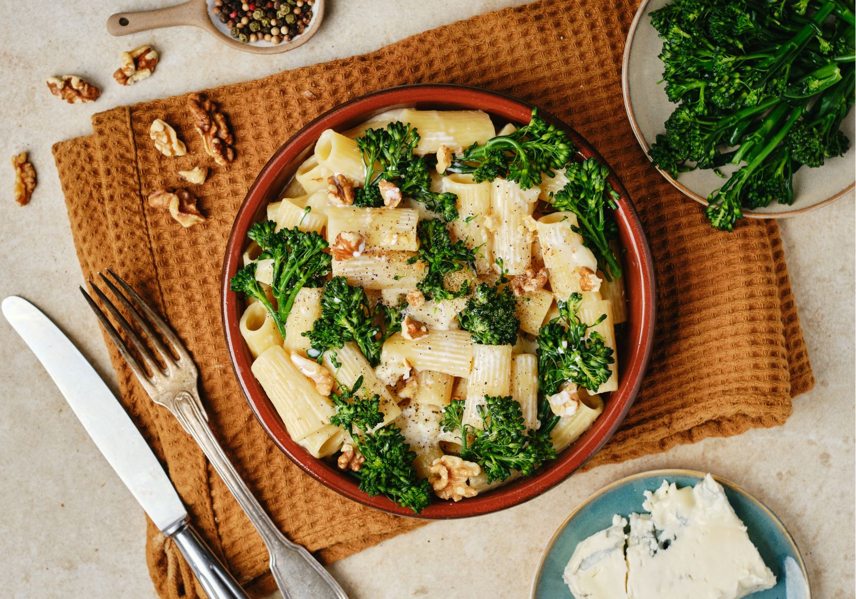 Linguines italiennes al dente à l'huile d'olive vierge extra (semoule de BLE dur (GLUTEN), eau, huile d'olive vierge extra, sel),Creme Gorgonzola noix (Gorgonzola (LAIT de vache entier pasteurisé, ferments lactiques (LAIT), sel, présure animale, pénicilium), crème (crème (LAIT), carraghénanes)),Bouquets de brocolis cuisinés à 85°C (brocolis 98%, huile d'olive vierge extra 0,8%, sel)
